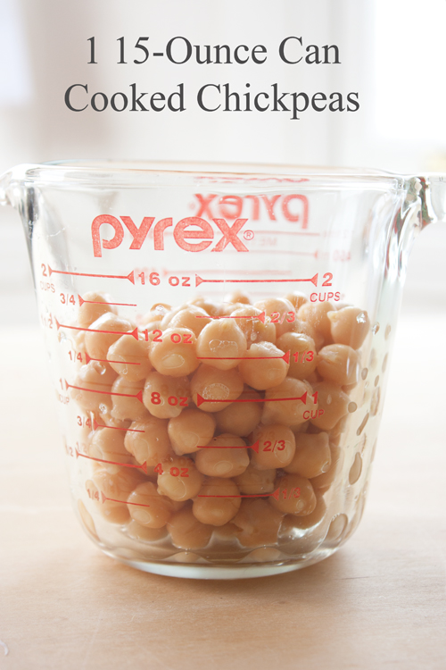 - 1 1/2 – 2 cups chickpeas, cooked and drained
