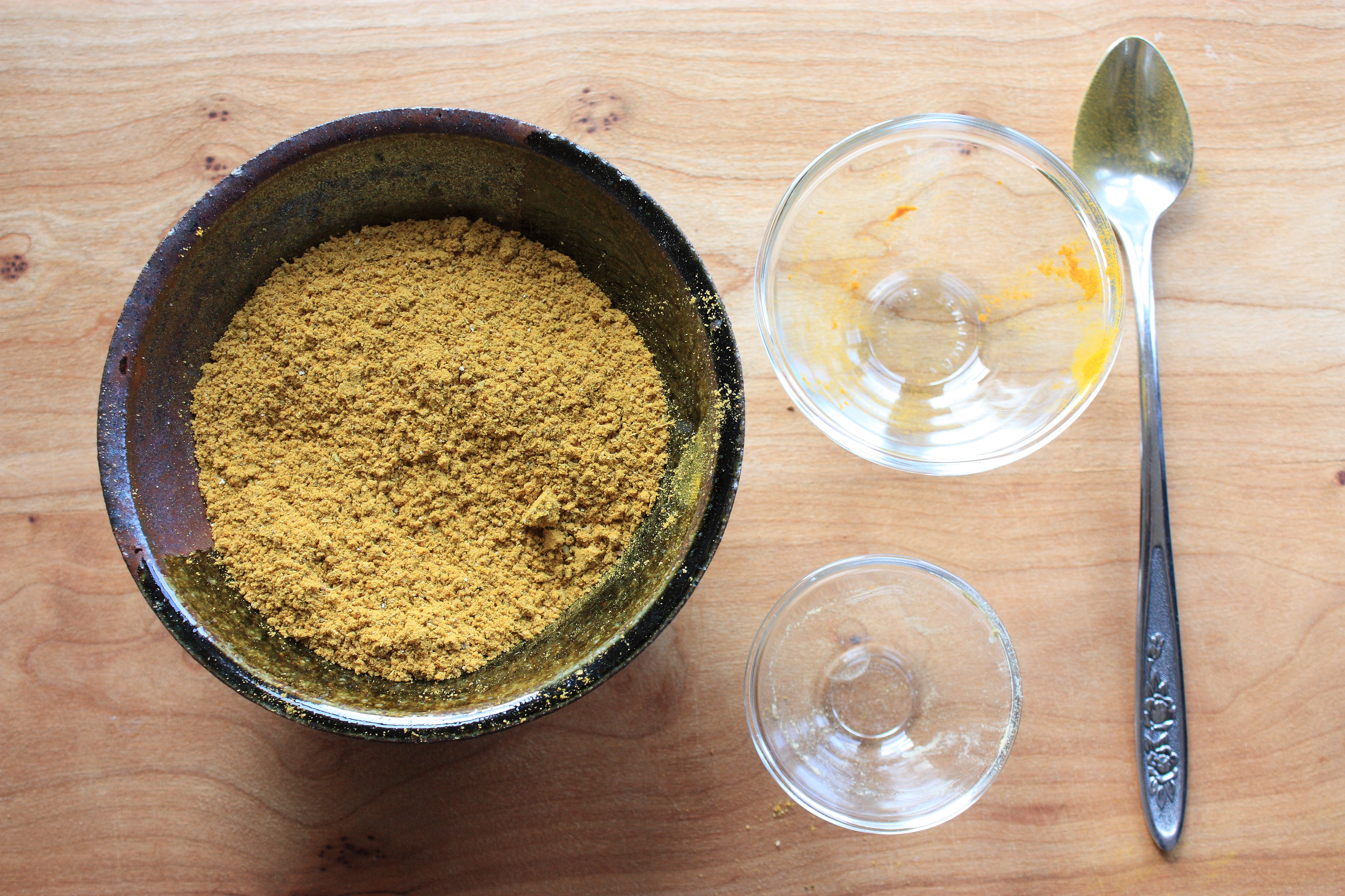 Pour and Mix: Pour the powder in a bowl and stir in the ginger and turmeric until they are well incorporated.