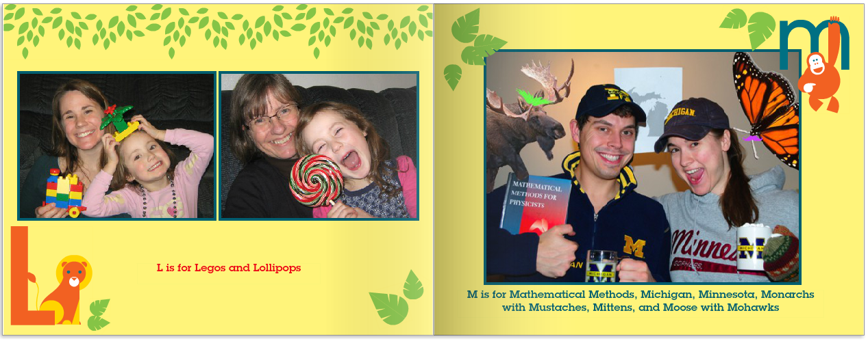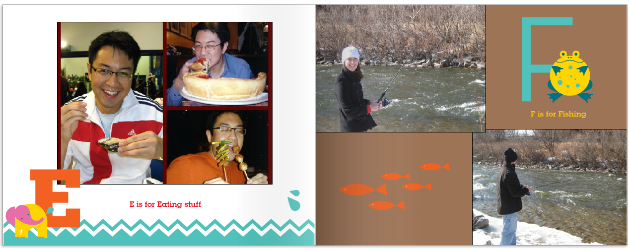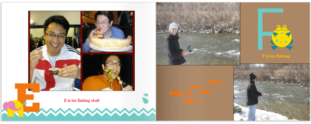 Also, I feel like sharing some of what others did from the book and for you to be able to see how it turned out. “E is for Eating stuff” from our friend Duncan had me in stitches.